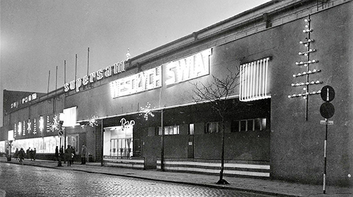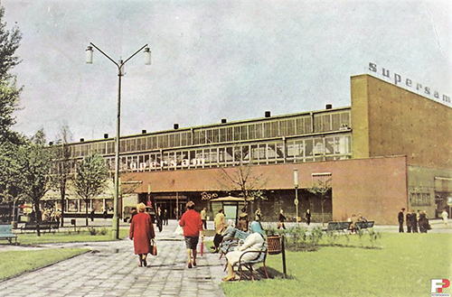 Po II wojnie budynek przejęło państwo i urządziło w nim kompleks wielobranżowych sklepów samoobsługowych o nazwie Supersam. Zmieniła się architektura budynku poprzez nadbudowę ścian czołowych. Jak na tamte czasy przystało inwestor i właściciel obiektu –Powszechny Dom Towarowy Katowice wystąpił w 1963 r. o zgodę na zainstalowanie dwóch szyldów neonowych SUPERSAM. Neony pojawiły się na szczycie ściany bocznej oraz na niższym poziomie ściany podłużnej obiektu.